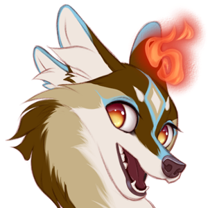 Cream Base, Brindle Mark, Blue Accent, Orange Eyes, Red Soulfire
