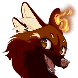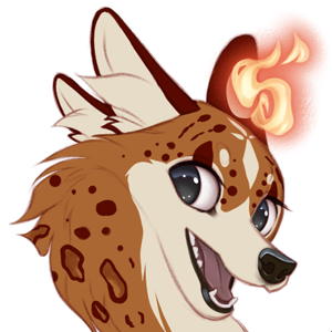 Red Base, Brindle Mark, Piebald, Asymmetric, No Accent, Purple Eyes, Soulfire: Red & Yellow
