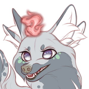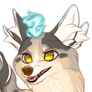 All Veliae have their double set of ears, long tails, large pupil-less eyes and a glowing flame over their forehead known as the Soulflame. The flame contains their essence and if it ever goes out, the veliae would cease to exist.Along their lower abdomen they have a pouch. This is not for holding young, as veliae are spirits and do not have organs to reproduce, but it is a pocket dimension, able to hold roughly 50lbs of small objects they can pick up with their opposable thumbed paws. Most keep snacks in their pouch, while others collect random objects they find neat.